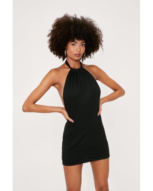 Nasty Gal Cotton Halter Neck Low Back Knitted Mini Dress In Black Lyst